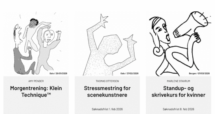 Lisa Lie tar deg med til skogs for å se etter månen. Guri Egge deler av sine stemmeverktøy for voksne scenekunstnere. I samarbeid med Proda får vi morgentrening med Amy Pender. Rudi Skotheim briljerer med sitt Excel -og budsjettkurs. Vi samarbeider med Scenekunstkollektivet om en ukes workshop om aktivisme og scenekunst.
