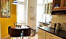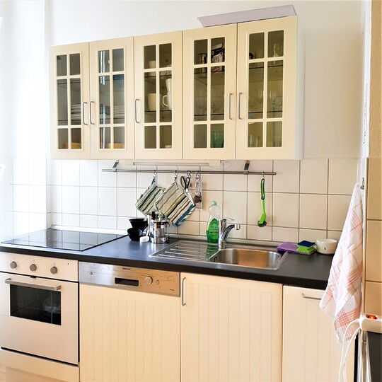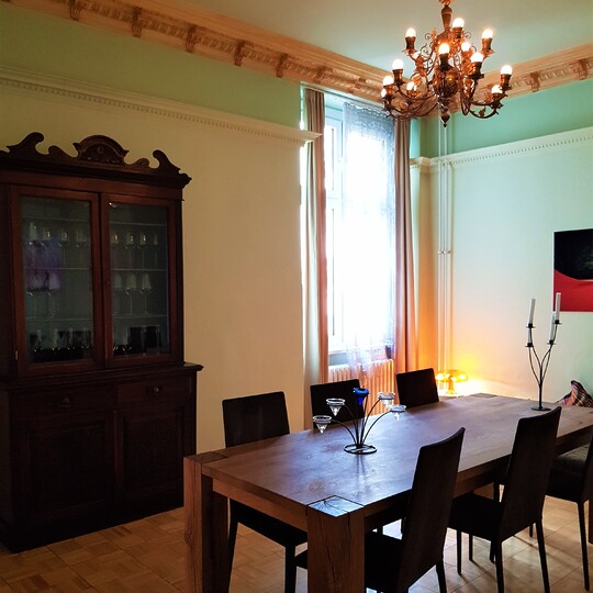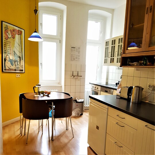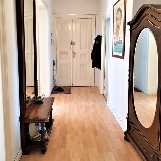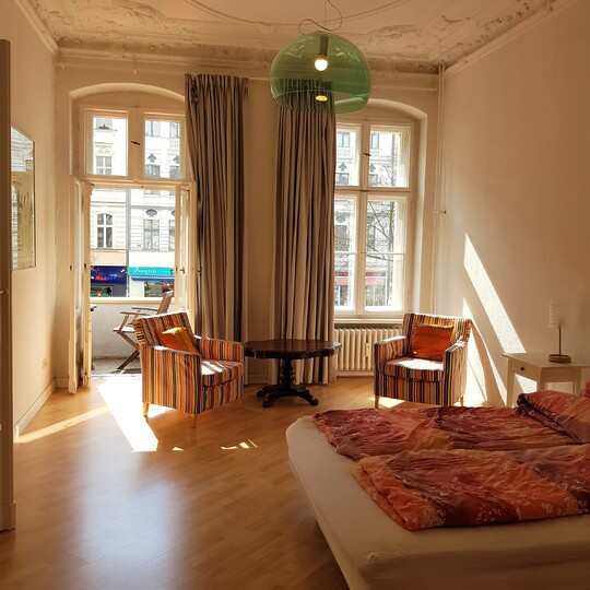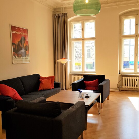 Den gamle herskapsleiligheten ligger i annen etasje i Kantstraße 63 i Charlottenburg – en veldrevet bygård med 18 leiligheter. Leiligheten består av to soverom, stor stue, fullt utstyrt kjøkken, spisestue, to bad og en balkong. Det er til sammen seks sengeplasser og én barneseng i leiligheten.
